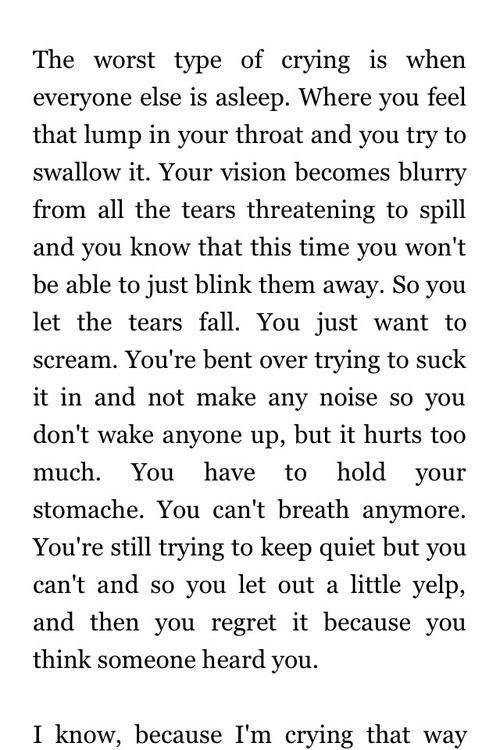 As I'm typing this post, I'm silently shedding tears but does anybody in this household/family notice? Nope, because none of you could care twice about me. Who am I, right? I'm just a disappointment to everyone of you; a hopeless screw up who can't seem to get back on her feet.